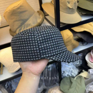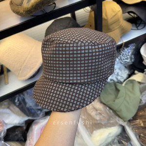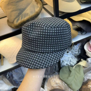 日系小众辣妹格子平顶马术帽子女秋季新款气质时尚百搭海军帽批发
