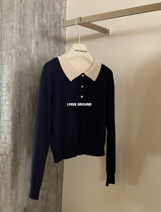 imiss 档口爆款!Polo领简约通勤百搭拼色慵懒风休闲女上衣针织衫