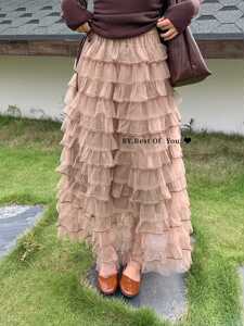 欧美网纱层层拼接长款蛋糕裙仙女半身裙仙女蓬蓬纱裙跨境货源色