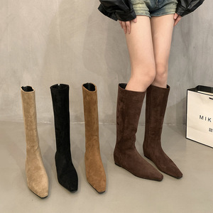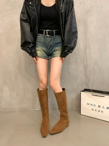 内增高复古卡其色瘦瘦靴中长靴女鞋2025年新款秋冬季长筒骑士靴子