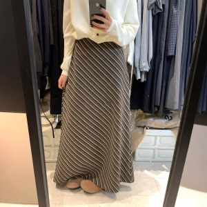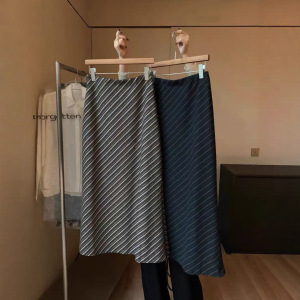韩系复古!2025秋季新款小众条纹设计百搭气质休闲a字半身裙女ins