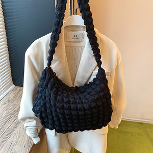 百搭褶皱包购物袋韩国少女心云朵腋下包包女2025新款纯色单肩包女