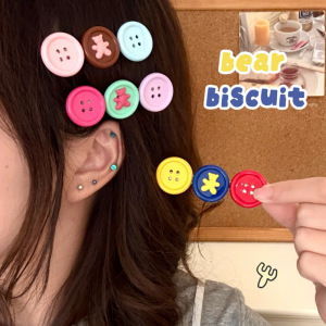 可爱撞色纽扣小熊发夹少女百搭鸭嘴夹碎发刘海夹创意边夹发卡发饰