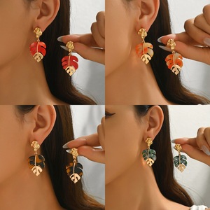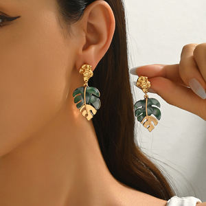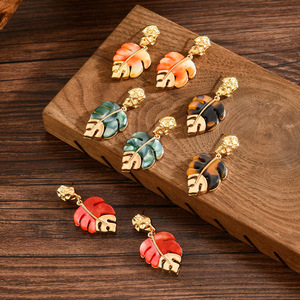 欧美跨境热卖 镂空创意树脂叶耳钉绿色树叶叶片耳环耳钉女