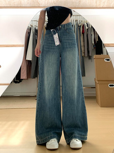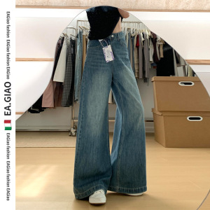 美式阔腿牛仔裤女2025新款复古水洗高腰显瘦宽松慵懒垂感拖地裤子
