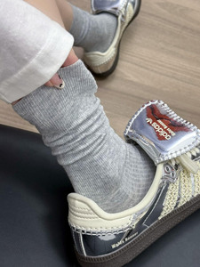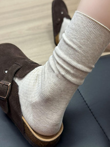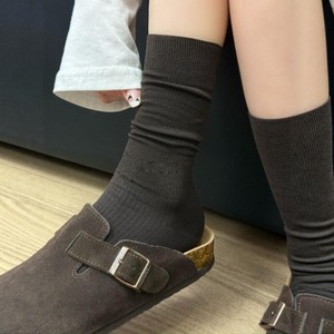 秋冬款棉质短袜竖条纹甜美米白色小腿袜咖啡色堆堆袜灰色中筒袜子