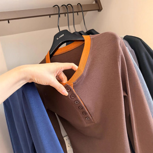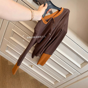 秋季新款撞色扣子长袖小衫一件包邮891046