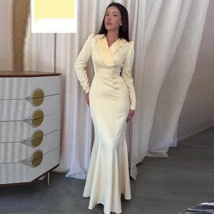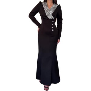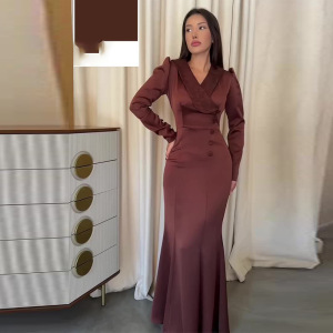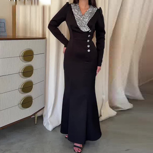 2025秋季新款女装欧美亚马逊跨境外贸时尚v领气质收腰包臀连衣裙