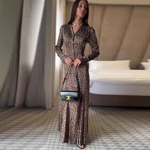2025秋季新款女装欧美亚马逊跨境外贸法式复古v领长袖碎花连衣裙