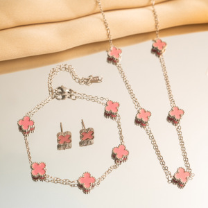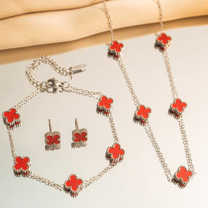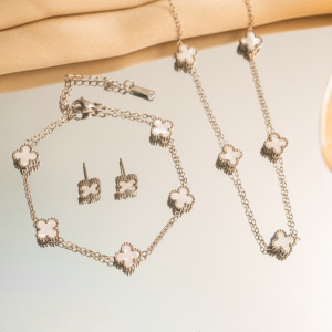钛钢不掉色9mm四叶花套装项链女时尚气质轻奢高级感小众手链批发