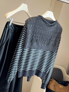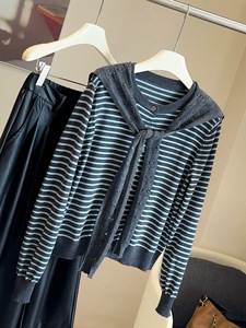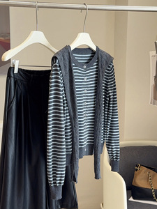 时尚洋气减龄针织条纹开衫带披肩女2025秋季新款韩系穿搭外套上衣