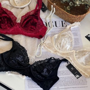 6923 丝绒内衣女小胸罩聚拢无钢圈蕾丝超薄文胸