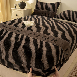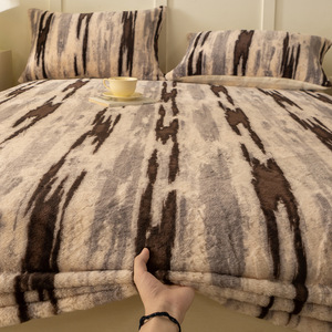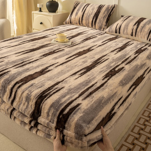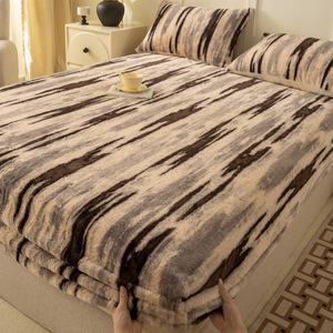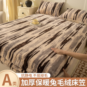 冬天加厚兔毛绒床笠单件保暖牛奶绒床罩珊瑚绒床垫套保护罩三件套