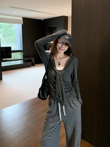 【260克人棉莫代尔】设计感系带假两件修身显瘦外穿百搭撞色上衣