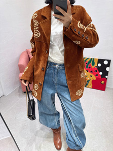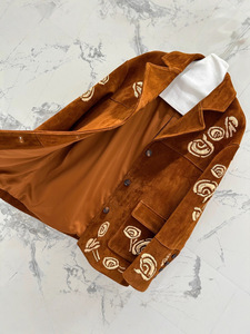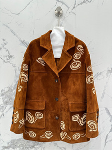 25ss秋冬新款真皮進口麂皮绒面西服重工刺绣皮衣西装外套翻领