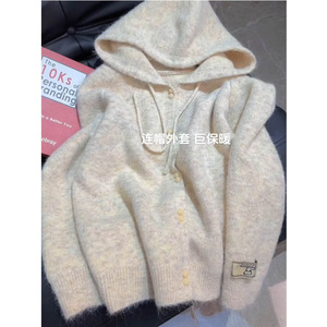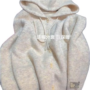 小个子甜美软糯连帽开衫毛衣女春秋小众设计感慵懒风宽松针织上衣