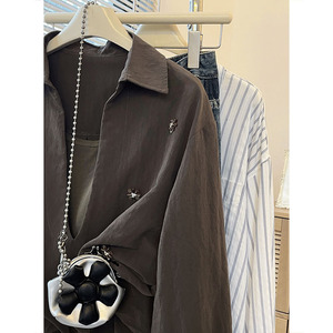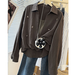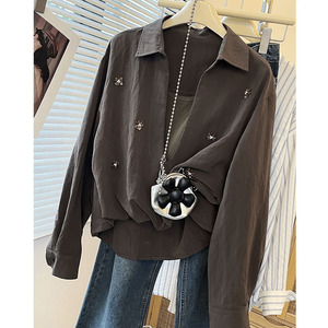2025法式时尚气质百搭显瘦钉珠长袖衬衫新款休闲轻熟设计咖色上衣