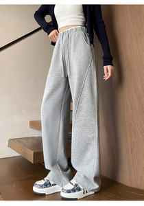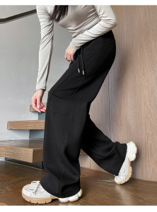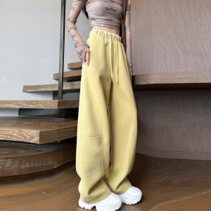 藏青色弯刀阔腿裤女春秋2025新款高腰休闲直筒卫裤美式香蕉运动裤