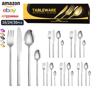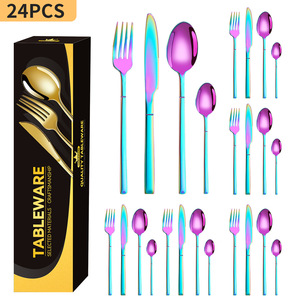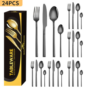 跨境不锈钢餐具骑士 创意刀叉勺24件套酒店牛排刀西餐具套装6人份