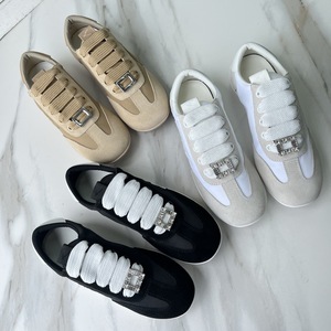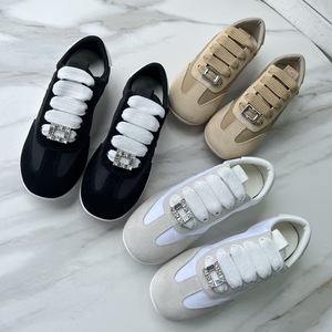 R*渠道货!欧美高端女士运动鞋圆头平底水钻方扣系带德训小白鞋