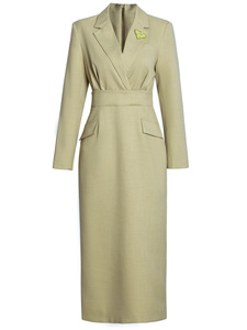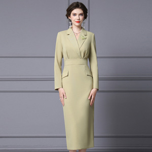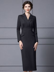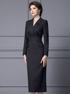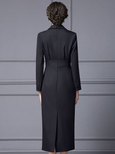 智丽重要场合漂亮连衣裙2025秋装新款高个子黑色长袖西装领长裙子