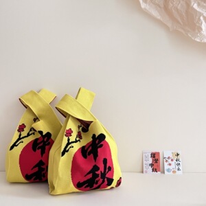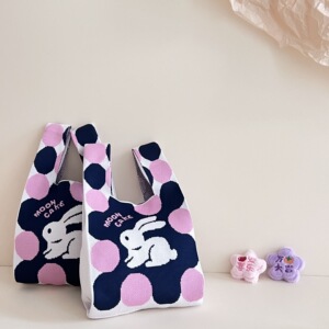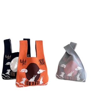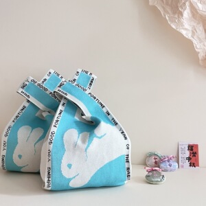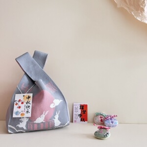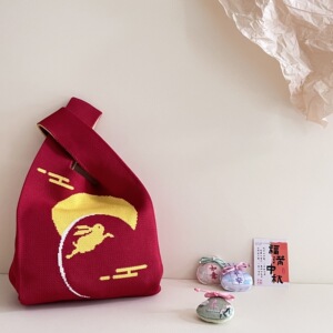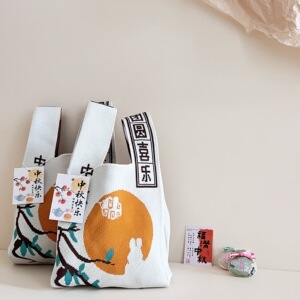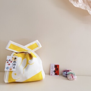 中秋节可爱兔针织单肩包手拎包月饼包装手提袋大容量礼盒袋托特包