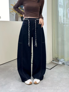 琪镌绘制秋季新款工装风弧形香蕉裤松弛感阔腿镰刀牛仔裤女8818