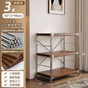 日式置物架钢木收纳架落地客厅阳台多层整理架厨房微波炉储物架子