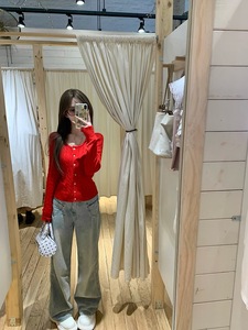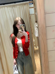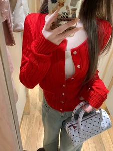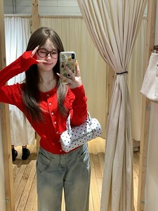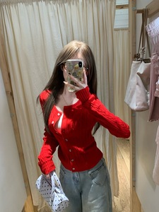 2025秋季新款韩系设计感高级感百搭圆领单排扣收腰长袖针织衫女潮