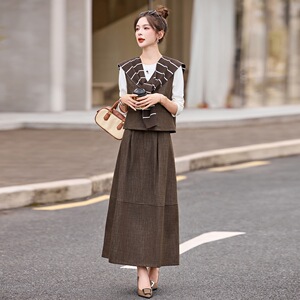 休闲洋气披肩条纹马甲半身裙三件套2025秋季新款韩系超好看套装女