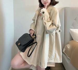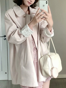 【秋日慕斯】袖口蕾丝拼接设计风衣外套女秋宽松上衣