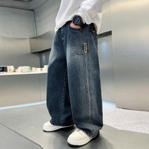 男童裤子春秋款2025新款大童酷帅男孩宽松直筒长裤秋装儿童牛仔裤