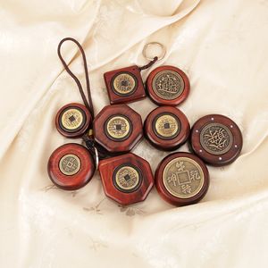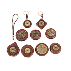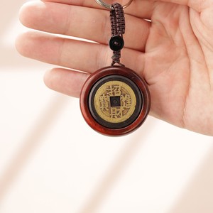 缎光紫檀木转钱手把件铜转钱钥匙扣挂件吊坠檀木挂件刻字工艺礼品