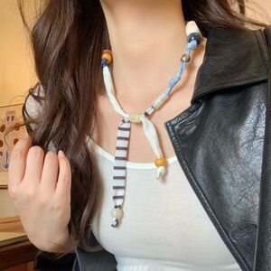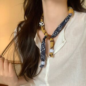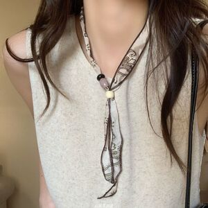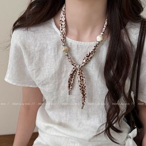 美拉德豹纹印花丝巾项链女2025新款爆款个性毛衣链小众设计感配饰