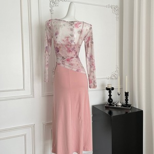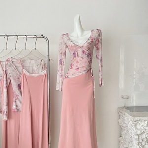 优雅玫瑰气质套装女2025新款秋纯欲网纱外衫吊带连衣裙两件套