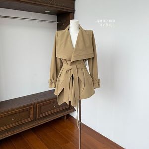 韩系新款2025时尚百搭古早风衣荷叶领短款大翻领风衣外套气质大衣