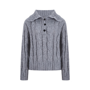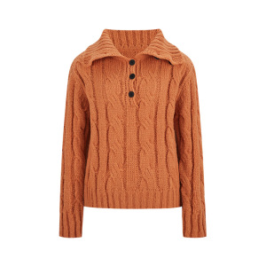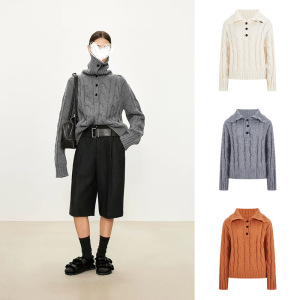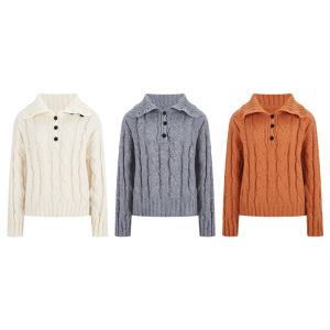 工厂直销秋冬时尚洋气复古纯色长袖针织衫女宽松显瘦百搭翻领毛衣