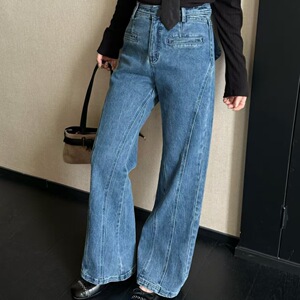 091607秋季2025女复古后腰蝴蝶结装饰牛仔裤百搭显瘦气质休闲长裤