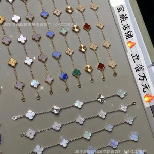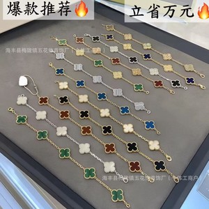 高版本CNC四叶草五花手链满钻镭射手链天然红玛瑙白贝母间钻手链