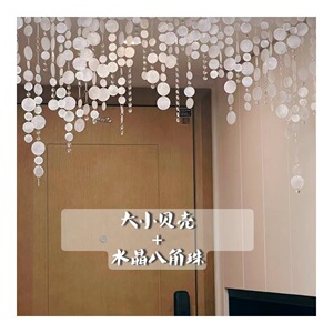 贝壳门帘珠帘玄关客厅创意隔断装饰帘子免打孔吊饰珍珠帘吊饰diy