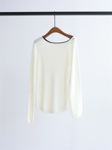 25秋季斜肩长袖针织衫露肩打底毛衣条纹韩版简约上衣套头羊毛混纺