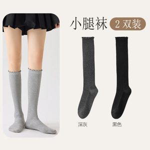 堆堆袜双针小腿袜搭配靴子女秋冬木耳边棉袜搭配长筒袜靴花边jk袜