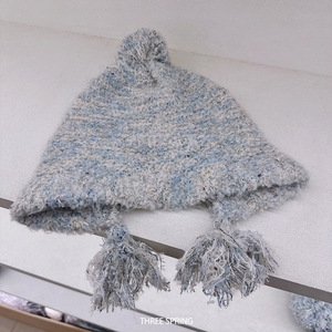 批发韩国2025年秋冬新款流苏毛球混色针织帽女韩版ins护耳雷锋帽