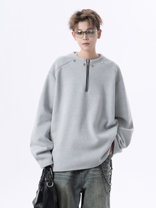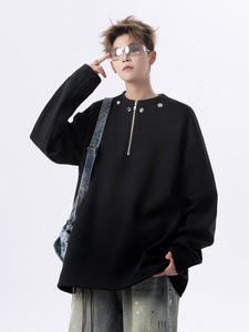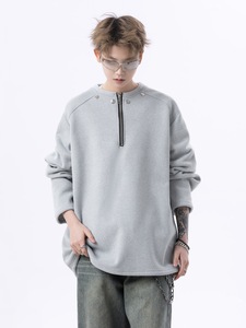 美式cleanfit卫衣男女士春秋冬季新款高街潮牌宽松休闲半拉链外套