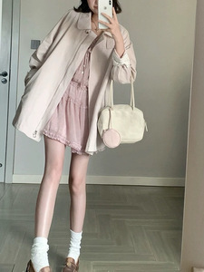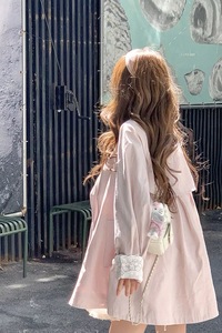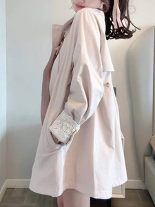 【秋日慕斯】袖口蕾丝拼接设计风衣外套女秋宽松上衣