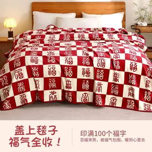 百福毯国风法兰绒毛毯被子新婚结婚订婚生日祝寿喜庆盖毯新年礼物
