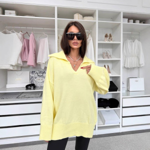 亚马逊跨境欧美风时尚百搭V领慵懒风垂坠感宽松高级感纯色毛衣女
