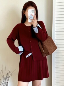 【包邮】大码气质休闲学院风针织套装2025秋款胖mm开衫女半裙两件