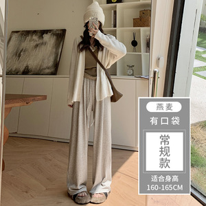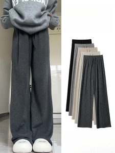 灰色糯米裤女秋2025新款高腰垂感休闲小个子秋冬针织加绒阔腿裤