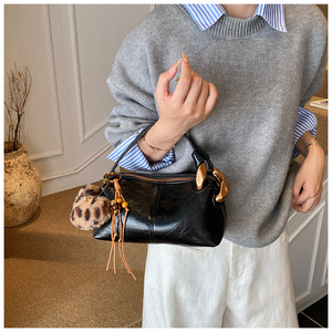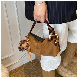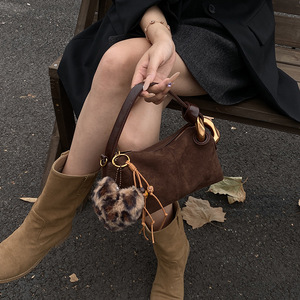 磨砂牛皮波士顿枕头包女高级感上班通勤小拎包麂皮绒斜挎包饺子包